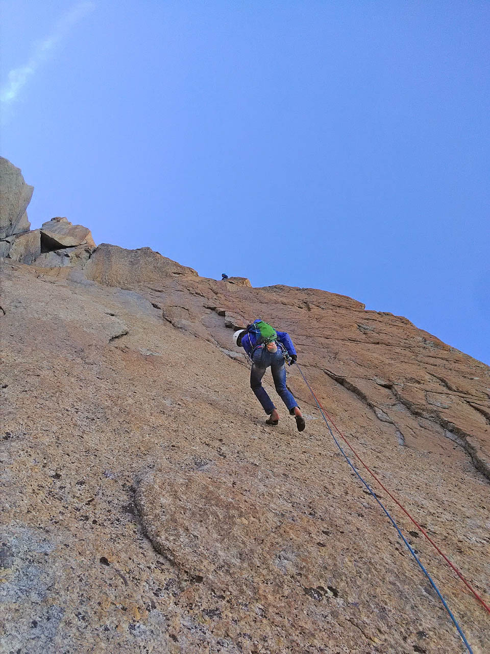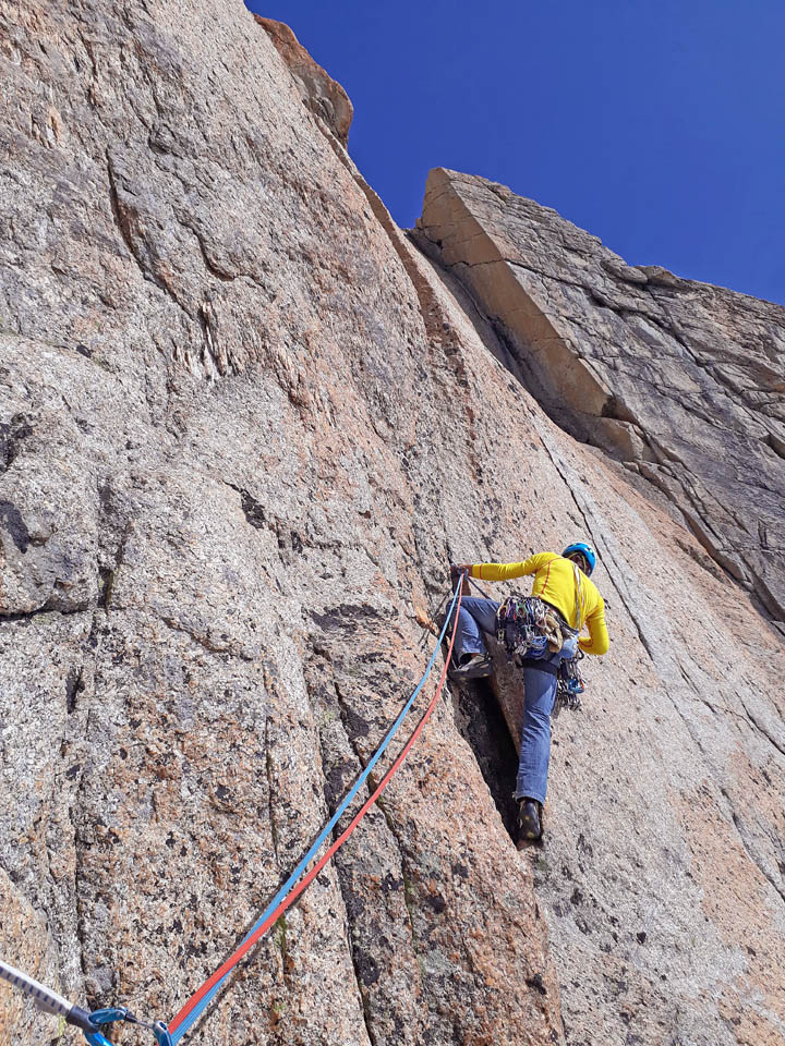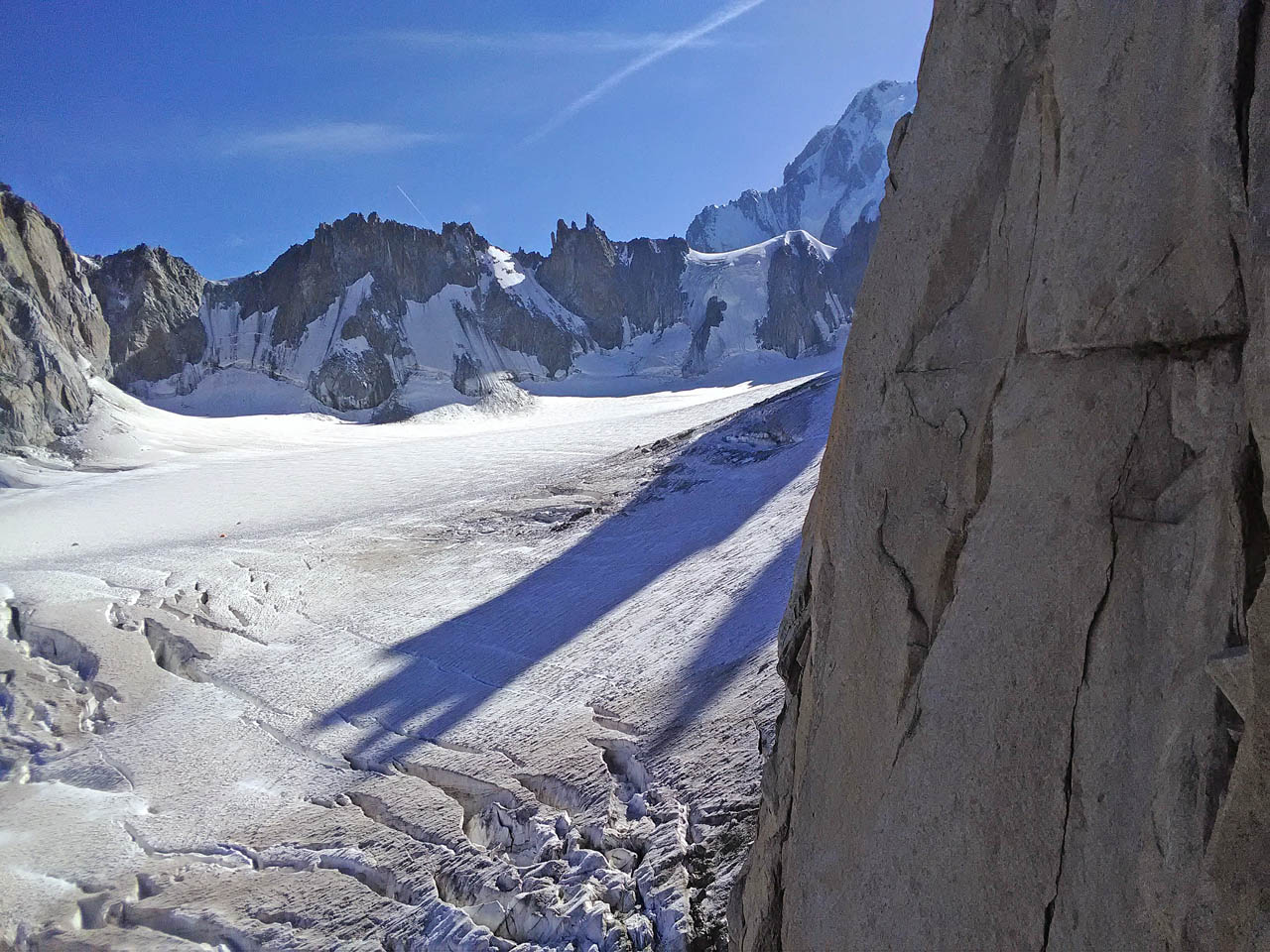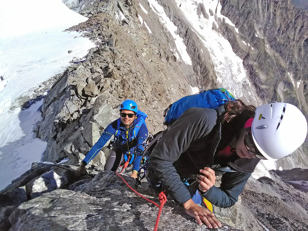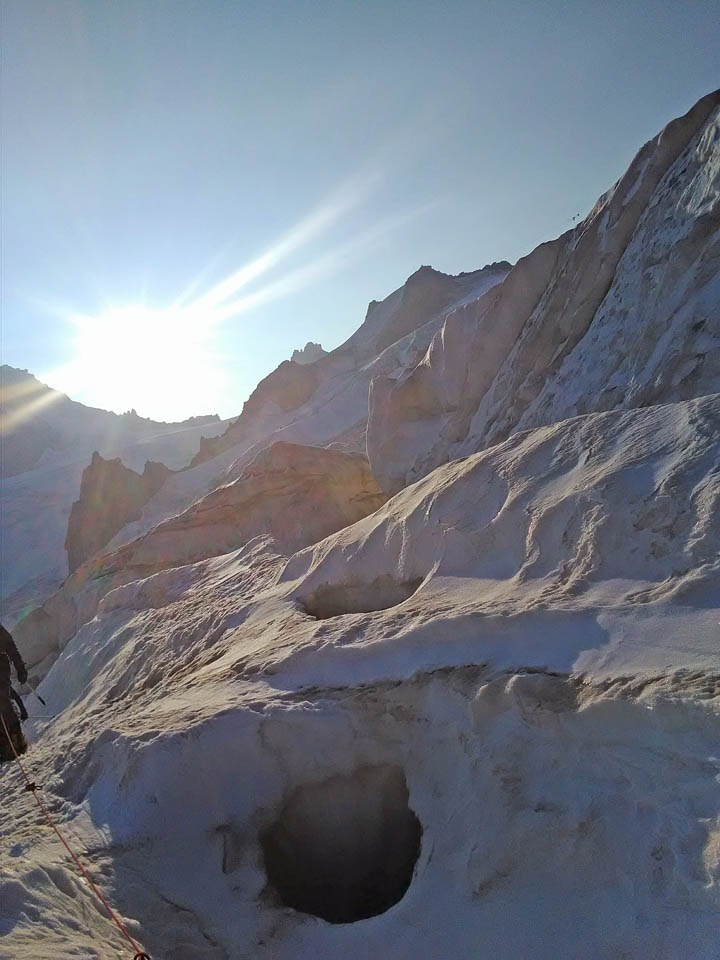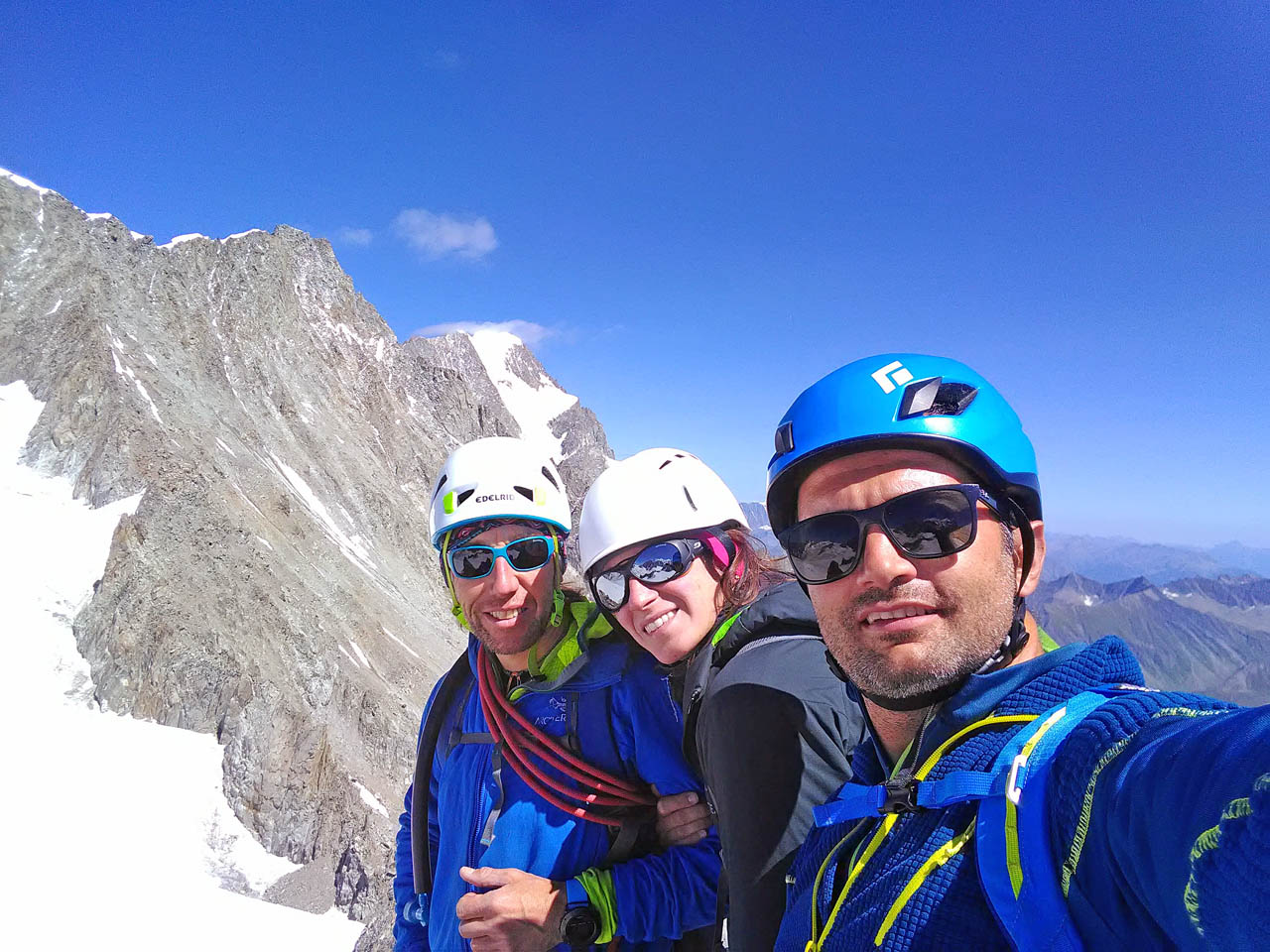Due giorni di avventura, percorrendo il primo giorno l’Aiguille Marbrèe, tenendosi carichi per il giorno successivo con salita della Bettembourg a Pic Adolphe. Una linea davvero eccezionale, di quelle emozionanti ed impegnative, abbiamo percorso la variante di 6b di G. Bassanini, un po’ più facile della classica linea, ma davvero stupenda, forse, senza toglier nulla ai restanti tiri, la più bella! Fessure da togliere il fiato, continua e mai banale e una roccia strepitosa con super grip su dita e piedi!