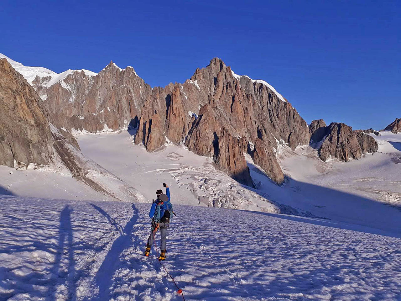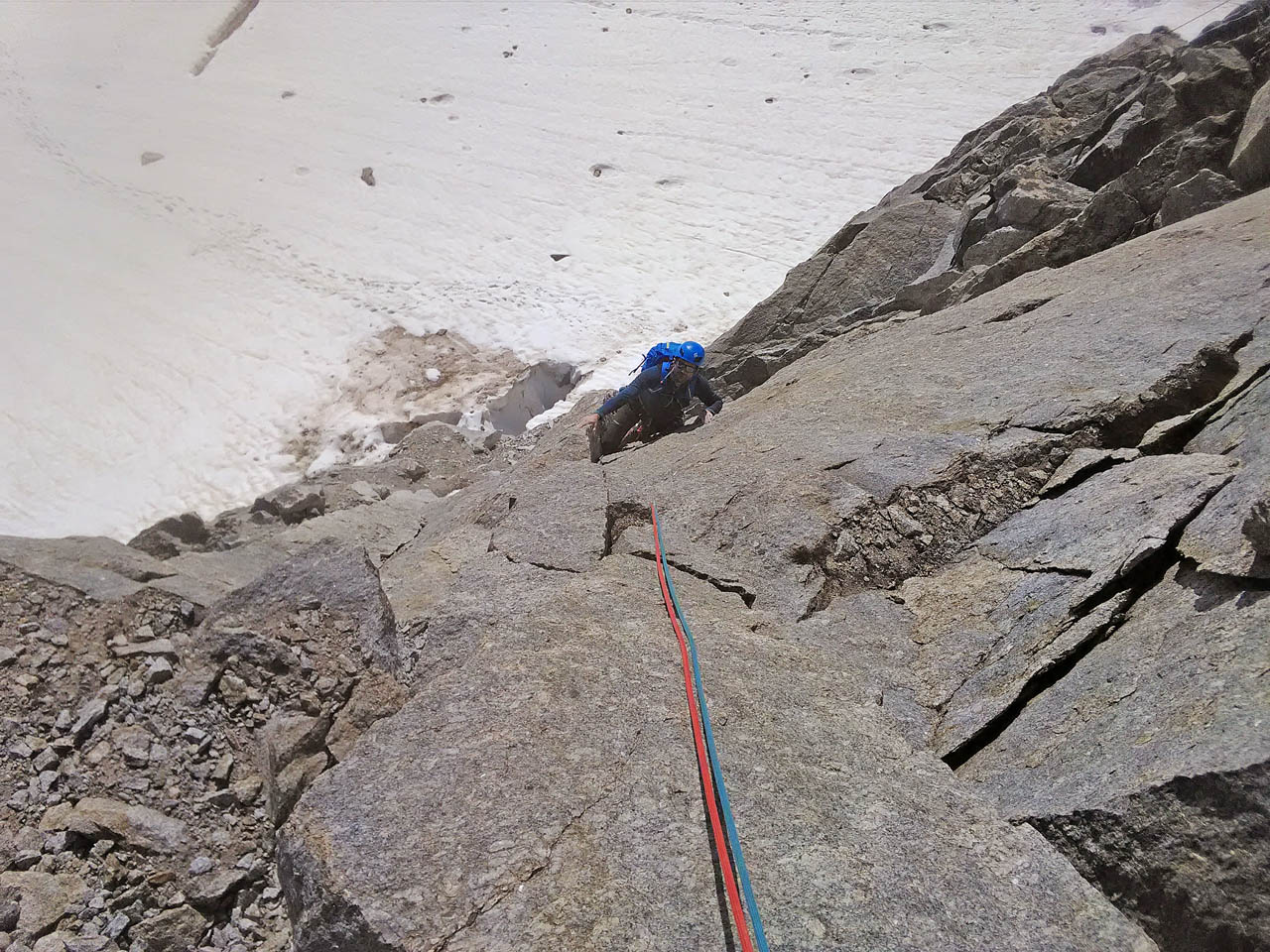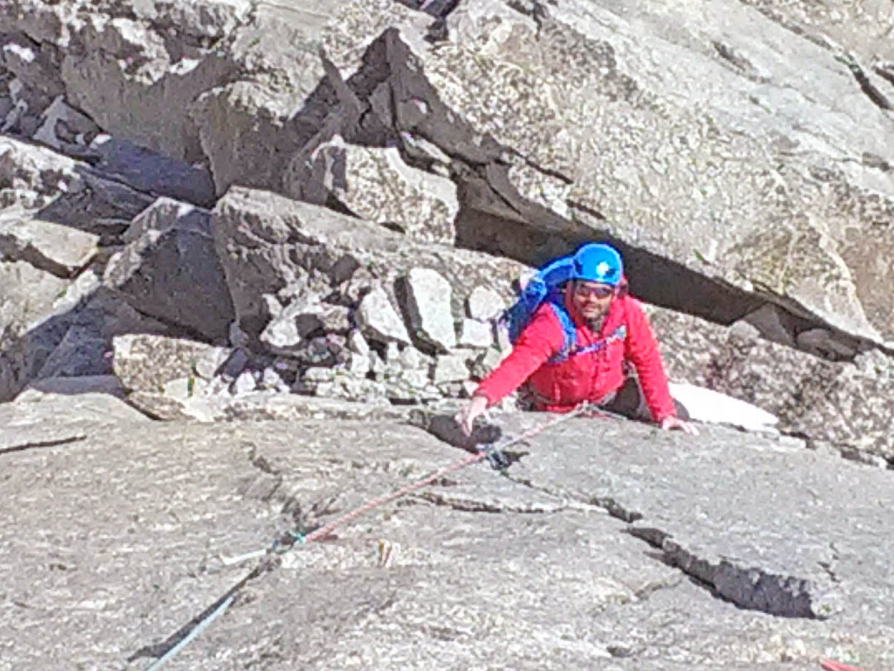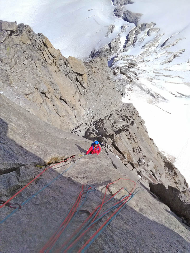 Bellissima giornata alla Tour Ronde con Cico! La via appunto è la Cheraz, molto bella e con alcune lunghezze davvero meritevoli (L4- L6 in particolare), la via è ben protetta dove non si può, o è difficile integrare (solo un po’ di attenzione al primo passo impegnativo su L1) e sui restanti tratti (la maggior parte) appaga la voglia di autoproteggersi a friends! Discesa in doppia, noi siamo scesi da (L6 a L5) da (L5 a L3) da (L3 a L2) e da (L2 a L0). (corde da 60 metri).