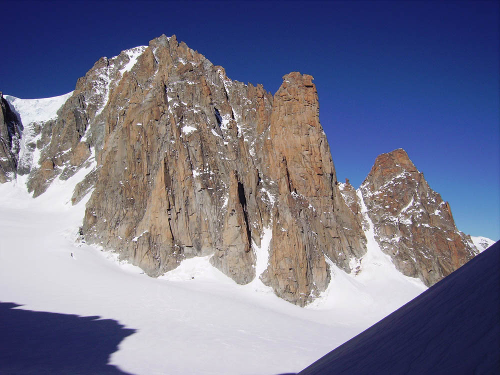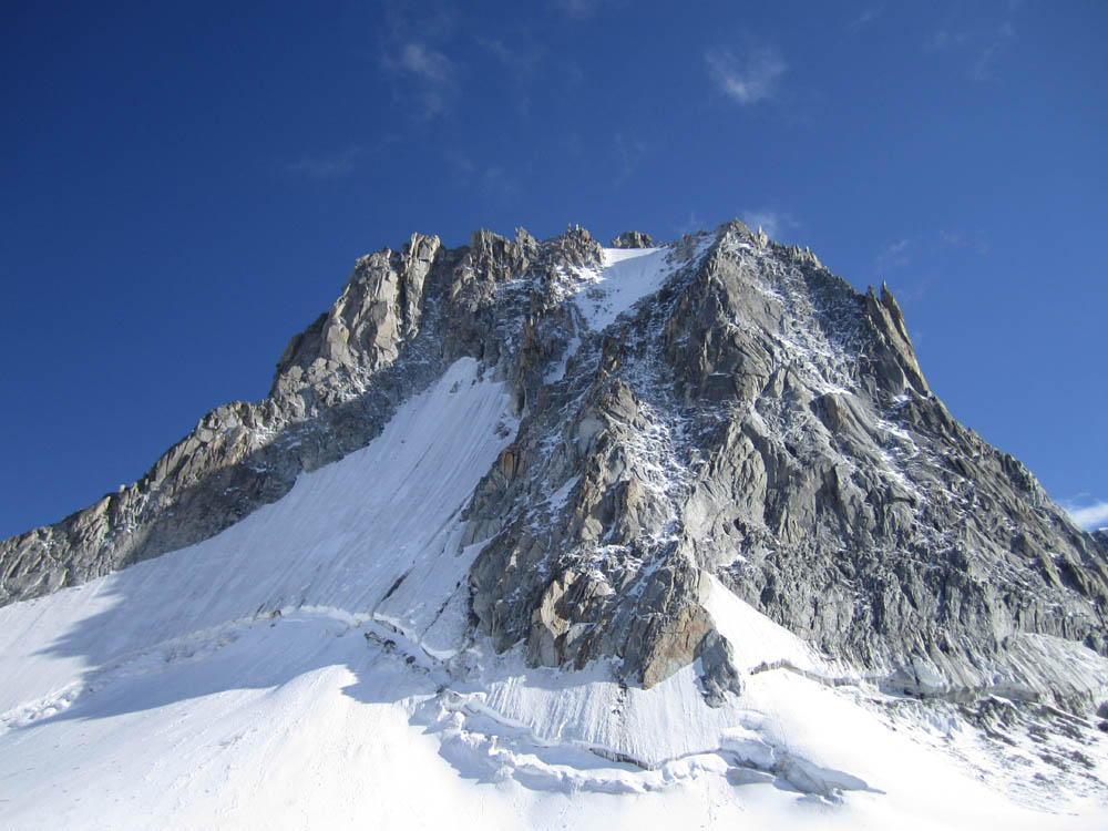 Questa discesa freeride vi permetterà di immergervi nell’ambiente grandioso del Monte Bianco. Lungo la discesa si potranno ammirare, oltre alla cima del tetto d’Europa, le famosissime e fantastiche cime della Tour Ronde, del Mont Maudit, del Dente del Gigante, del Mont Blanc du Tacul, della Aiguille du Midi, delle Grandes Jorasses, dei Drus ed altre ancora.
